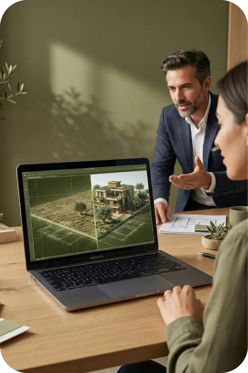 We combine rendering, architectural visualization, and smart automation to transform empty land into stunning building concepts.